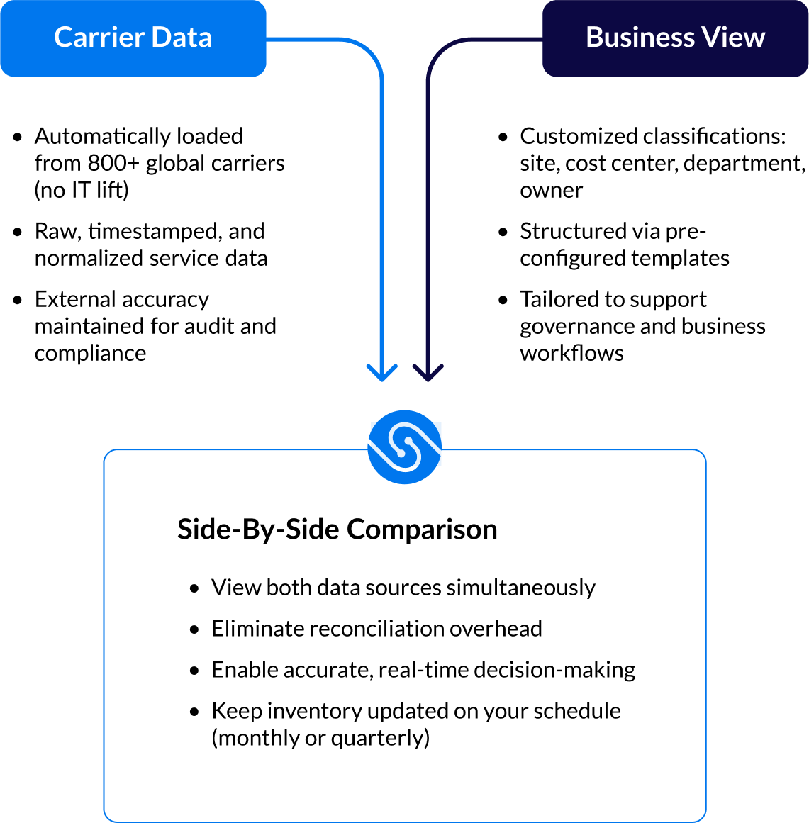 Most organizations rely on TEM platforms, spreadsheets, outdated portals, disconnected reports, and tribal knowledge to track thousands of wireline services across dozens of carriers.